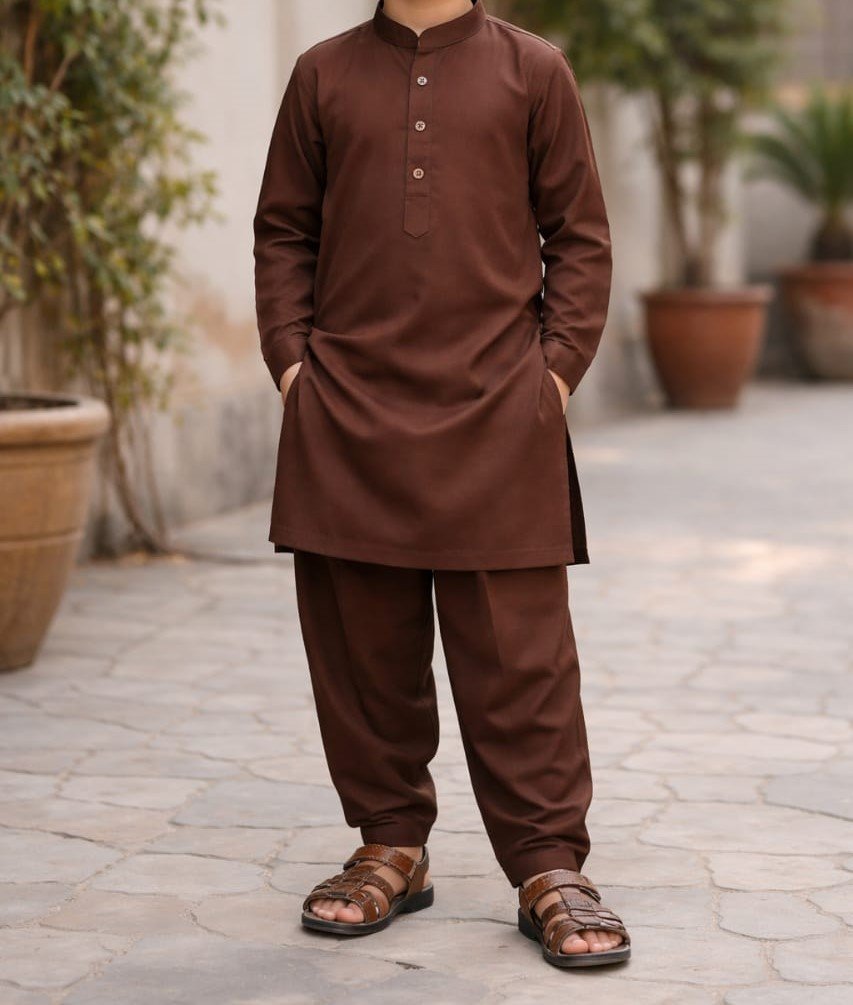 The Earthy Cocoa suit offers a unique depth of color that is both warm and inviting. This chocolate brown shade is perfect for those looking for something different yet formal. The tailored fit provides a sharp silhouette, while the high-quality cotton weave ensures the suit is durable enough for even the most energetic children. It pairs beautifully with dark brown or tan footwear.